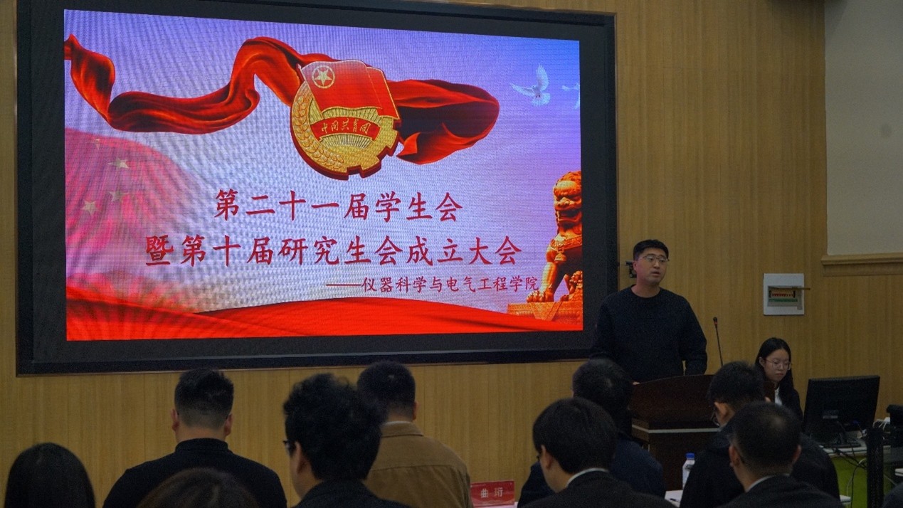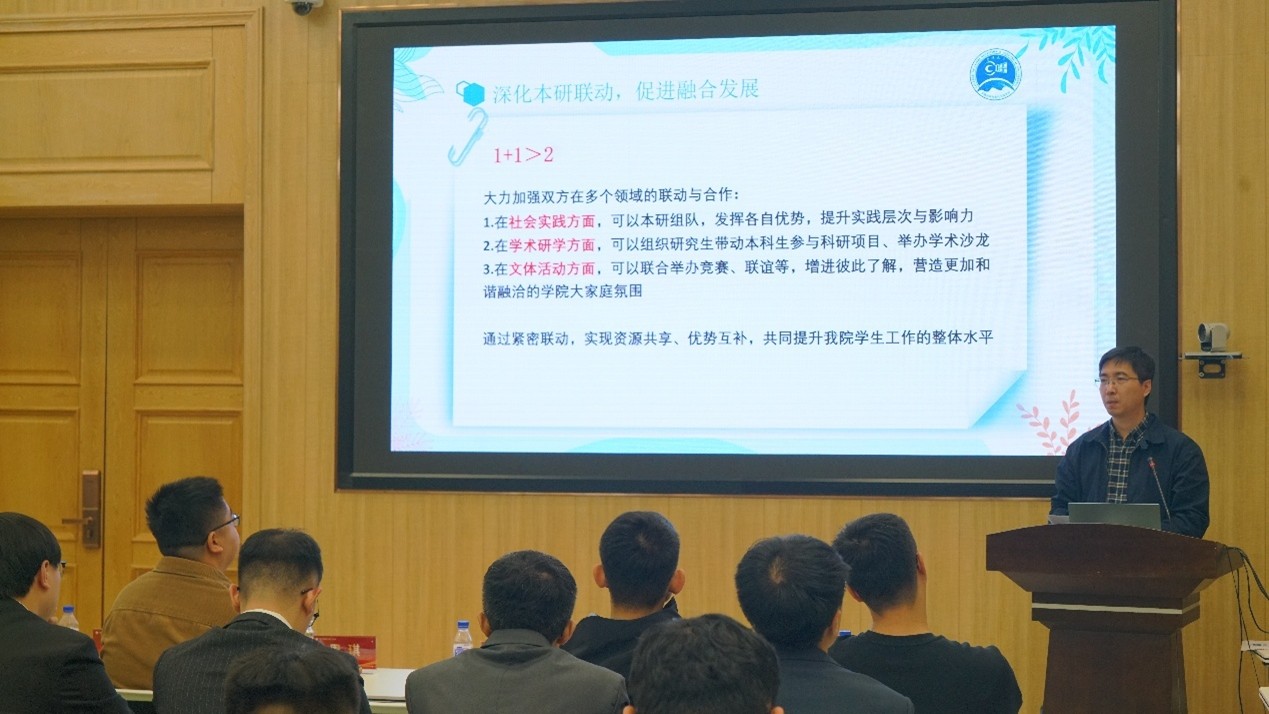 随后,学院第二十一届学生会执行主席杨舜作为新一届学生会代表发言。他表示,新一届学生会将秉持“求实创新、励志图强”的校训,围绕思想引领、权益服务、文化建设、协同联动四大维度精准发力,致力打造暖心服务体系,搭建多元成长平台,以实干担当服务同学成长成才。学院第十届研究生会执行主席梁冰琪在发言中承诺,新一届研究生会将秉承“追求卓越、互助利他”的原则,在科研学术、校园文化、日常服务及思想引领等方面持续拓展,积极倾听同学心声,赋能同学成长。