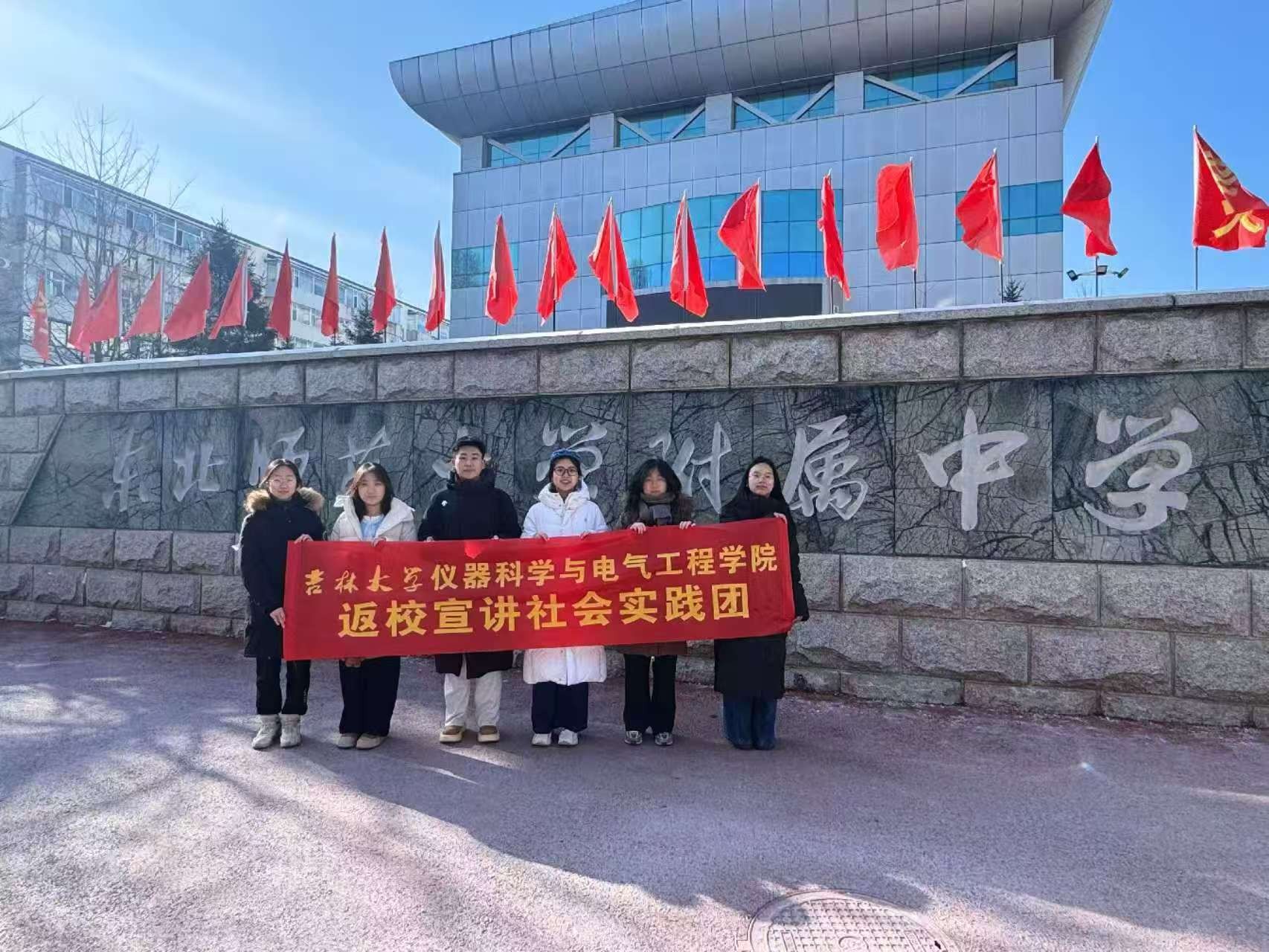寒假“招生宣传母校行”实践团队于2026年1月寒假期间,赴东北师范大学附属中学开展专题招生宣讲活动。团队由王浩宇等6名优秀本科生组成,通过精心设计的宣讲内容与朋辈互动,为高三学子搭建起了解吉林大学及仪电学科的沟通桥梁,以青春之声传递吉大精神,以专业之姿展现学科魅力。