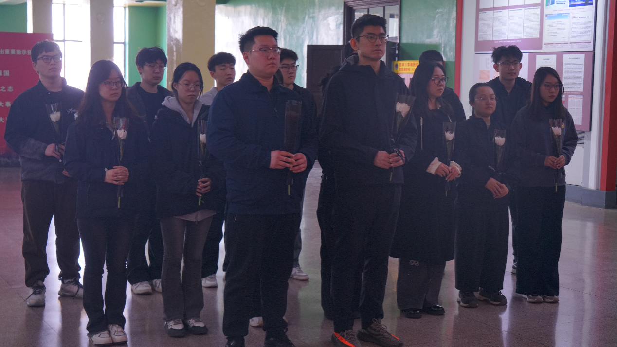 活动伊始,全体师生肃立,向黄大年教授雕像默哀一分钟,表达深切的追思与崇高的敬意。随后,学生代表缓步上前,敬献鲜花,寄托哀思。