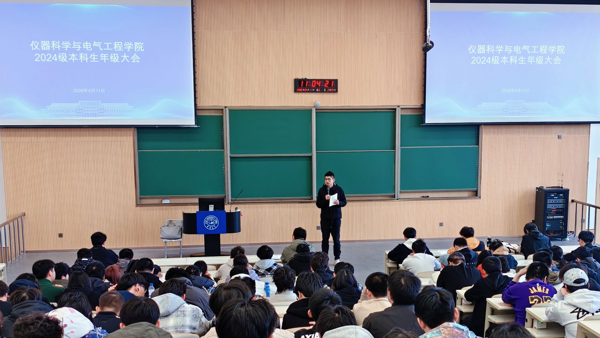 2024级本科生年级大会在李四光教学楼第二阶梯教室召开。本次大会由学院辅导员王文轩主持,2024级全体本科生参加。