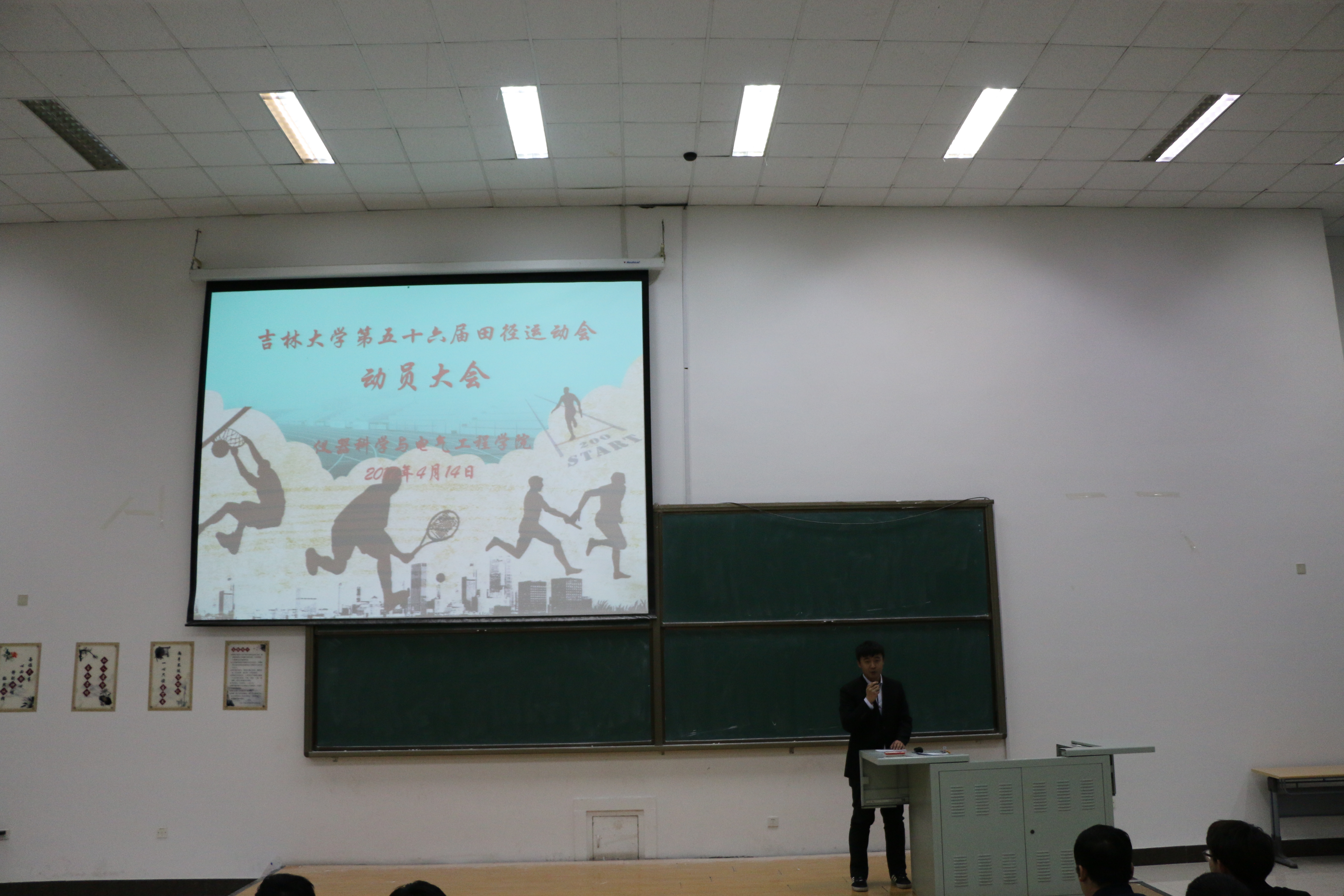 体育部于吉林大学南区李四光教学楼举办了“吉林大学第五十六届田径运动会动员大会”。团委书记张昊宇老师、各部门部长、副部及16级同学参与此次会议。