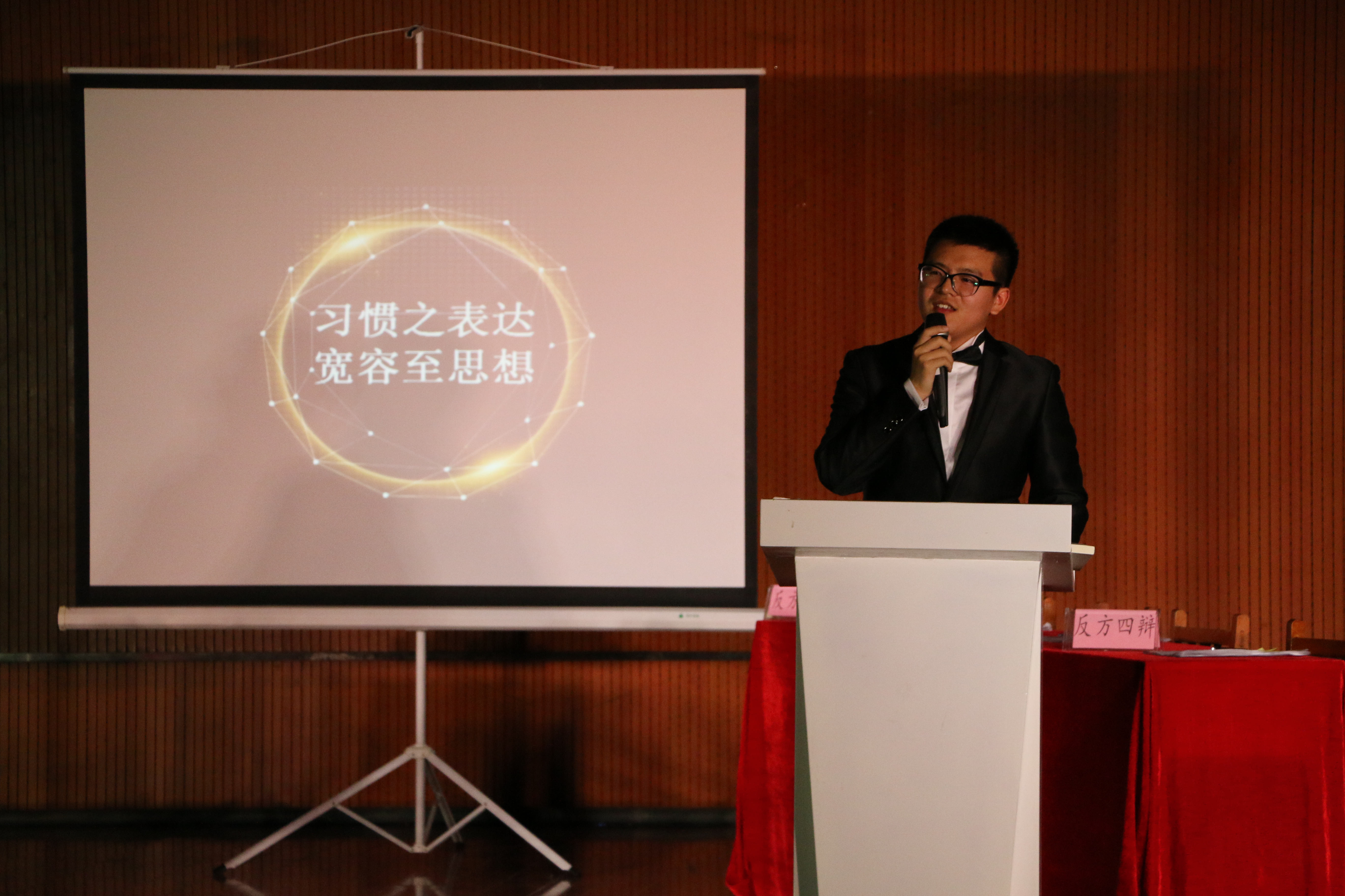 18时30分,报告厅的灯光突然暗下,全场的目光聚焦在舞台上。晚会由学院生声论坛成员自主设计的宣讲视频开始。六分钟精彩的宣传视频生动有趣的向大家逐层渗透了生声“责任、思考、表达、分享”的核心理念。热烈的掌声中,生声论坛的学生创始人我院15级1班马松辰同学带着一句经典的“风声雨声读书声,声声入耳;家事国事天下事,事事关心”登上演讲台。配合简洁明了的幻灯片,他用生动的语言,丰富的例子向大家依次讲述了“广博之阅读,深邃至灵魂;焦虑之思考,自由至信仰;习惯之表达,宽容至思想;无限之分享,人文至创意;豁达之尝试,恪慎至责任”的社团拓展理念,倡导当今大学生广泛阅读,多思考,多交流,明确自己的责任与担当,同时也用肺腑之言表达了自己和团队创立社团一路走来的心路历程。最后,马松辰同学引用雅思贝尔斯在《什么是教育》中的一段话:“精神贵族是从各阶层中产生的,其本质特征是品德高尚、个体精神的永不衰竭和才华横溢,因此精神贵族只能是少数人,大学的观念应指向这少数人,而芸芸众生则在对精神贵族的憧憬中看到了自身的价值。”作为宣讲的结束。