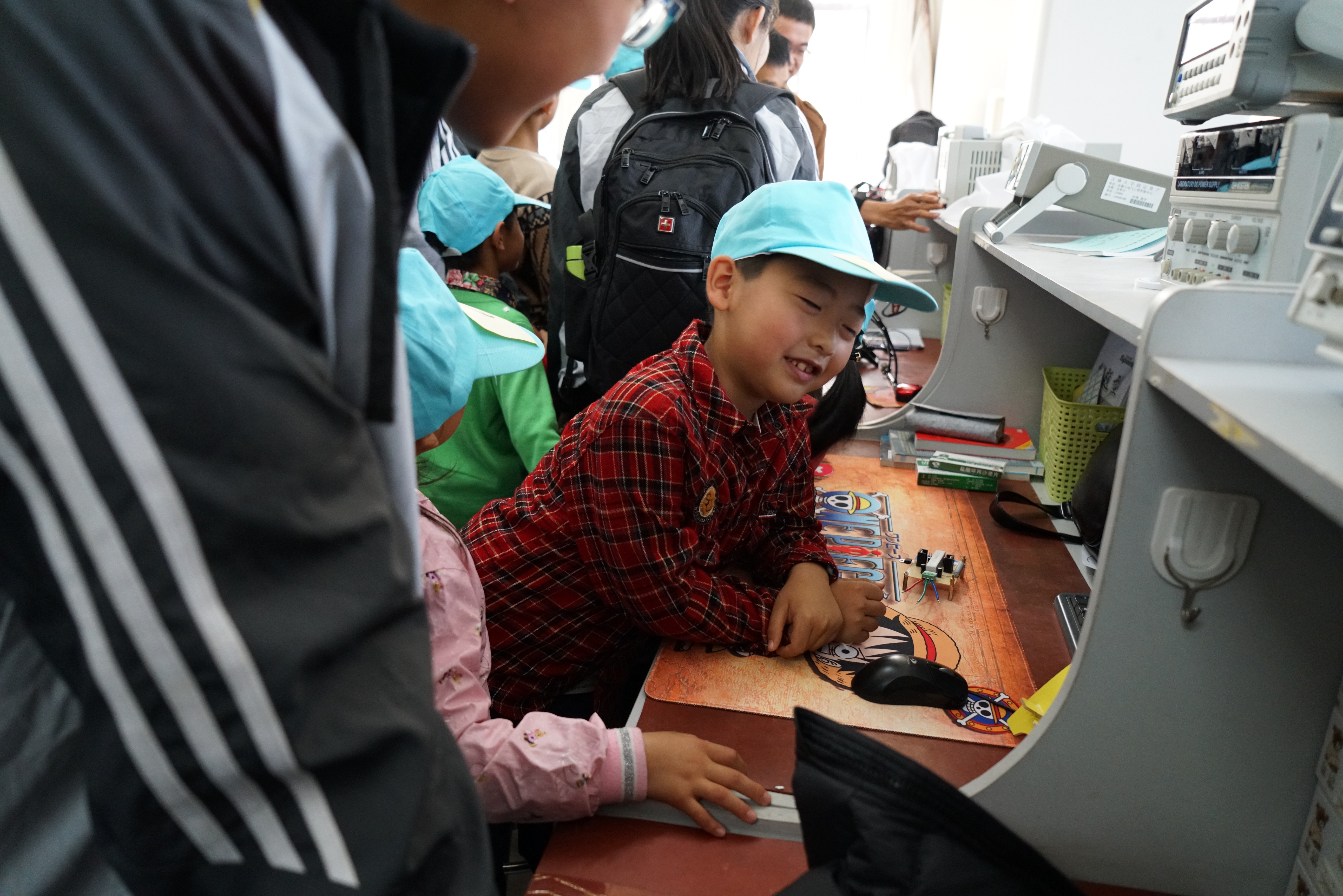 “孩子们平时都在课堂上孜孜不倦地学习课本的科学知识,鲜有机会接触真正的科技发明,通过举办本次活动,我们希望使孩子们了解有趣的科技小知识,尝试进行电子作品的制作,激发他们学习科学文化知识和探索未知新鲜事物的潜力,让孩子们进一步了解大学生活、坚定继续学习科技文化知识的信念。”吉林大学“牵手”志愿者协会会长袁锦烽同学对记者说道。为了让他们亲身体会到科技创造的神奇与精彩,在与小朋友们互相熟悉后,志愿者带领孩子们参观了仪电学院216+开放实验室的电子作品,针对每个作品为他们普及相关的科技知识。并让孩子们亲手搭建电路,编辑下载程序,点亮LED灯,用显示屏展示自己的名字,让他们感受到科技的神奇魅力。