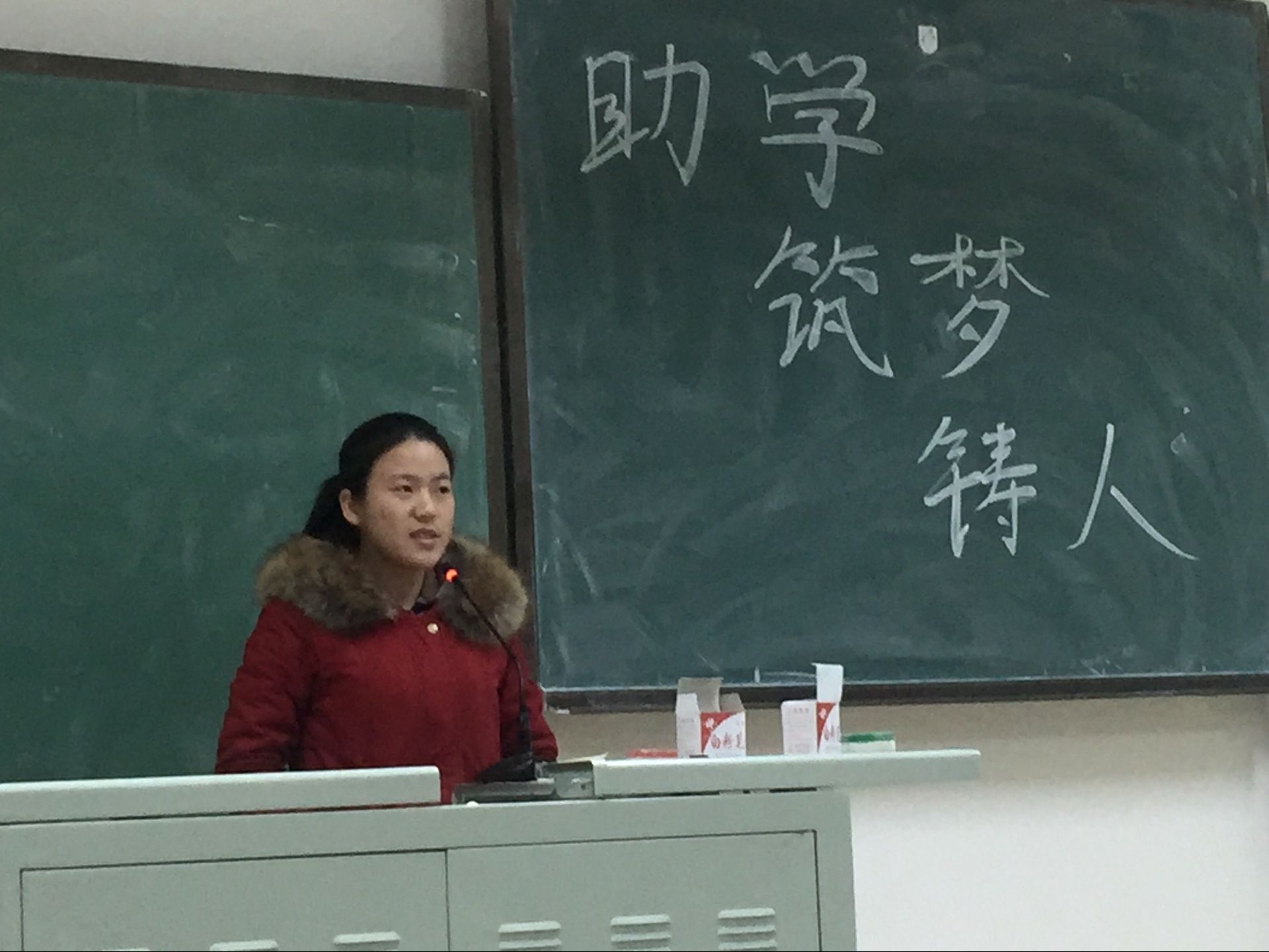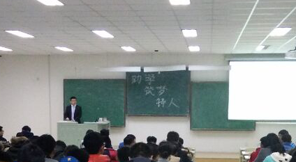 于李四光302教室举行“助学•筑梦•铸人”主题宣讲会, 2015级全体学生参加。