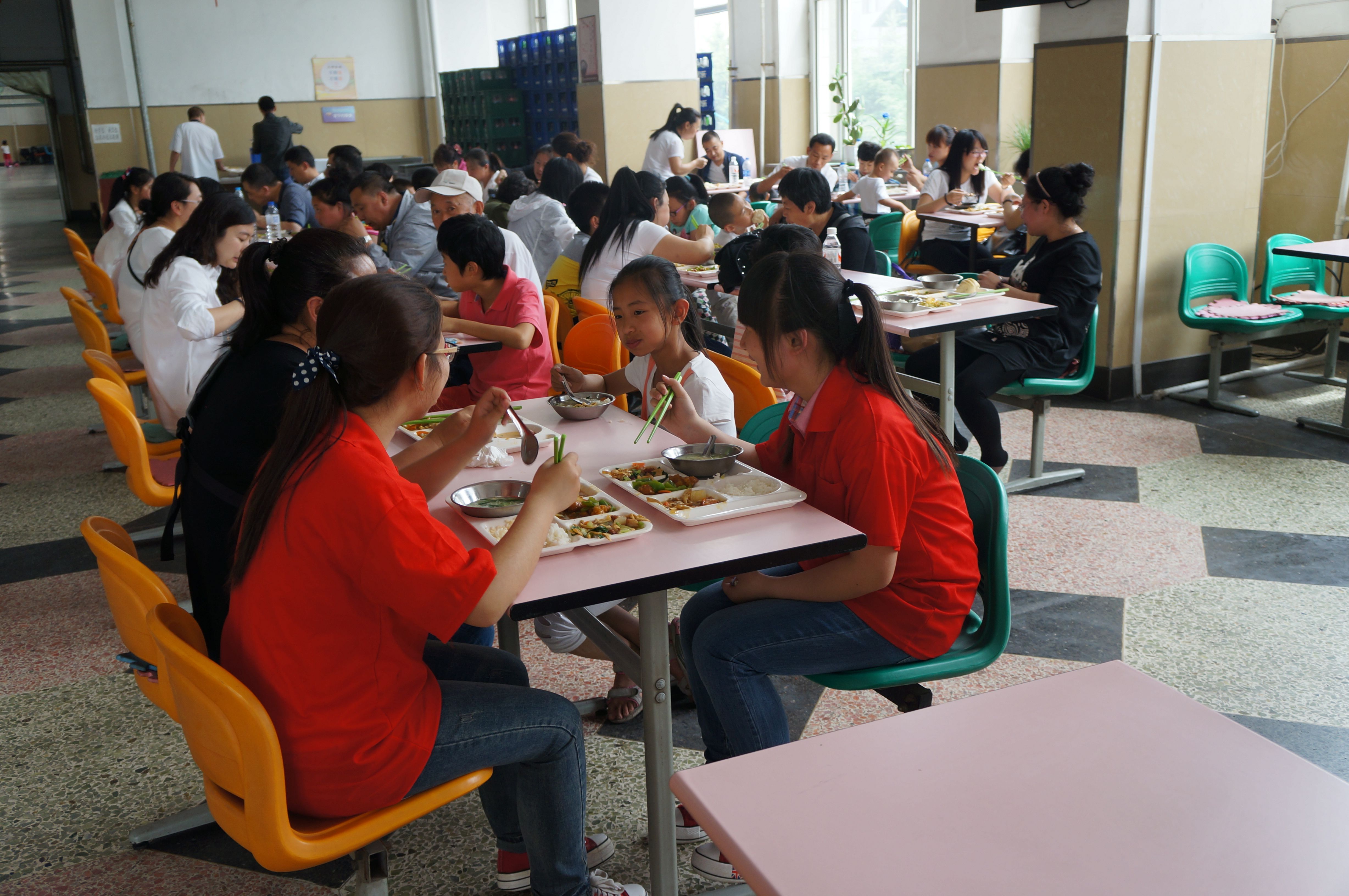 大学生志愿者们的带领下,38名小朋友和他们的家长秩序井然地走进食堂,大学生志愿者们热情地帮助每个小朋友到食堂窗口排队打饭。可口的饭菜和温馨的关怀让小学生们感受到了如家的温暖。大学生志愿者们和孩子们一起就餐,并与他们进行亲切的交流,大家很快消除了彼此之间的陌生感,亲切地交谈了起来,志愿者们与孩子们畅谈大学生活,与孩子们共同憧憬未来,餐厅里气氛活跃,不时的传来孩子们的笑声。在聊天中志愿者们了解到,他们的父母为我们城市的建设挥洒着辛勤的汗水,更为我们祖国的发展贡献着坚实的力量。志愿者们纷纷鼓励孩子们要勤奋学习,积极向上,为实现自己的人生理想和伟大的“中国梦”而不懈奋斗。