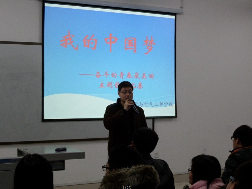 团委精心组织各班级团支部开展主题团日活动。2013年11月20日晚,学院团委组织2012级、2013级各班级团支部同学在中心校区李四光实验楼147室举行“我的中国梦•奋斗的青春最美丽”主题歌唱比赛。院团委副书记、2012级辅导员蔡印老师以及2012、2013级全体同学出席了此次活动。