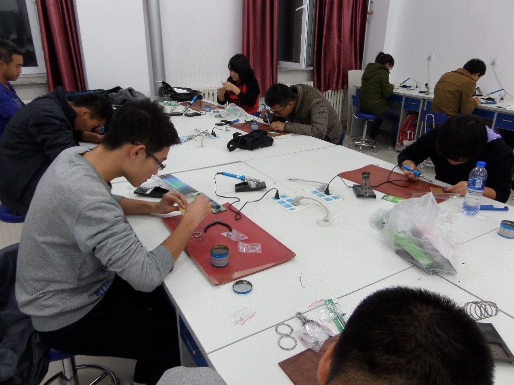 通过第一期的培训,同学们对基础的电子知识有了一定了解,此次培训的内容是电子元件的焊接。首先,科技协会骨干成员向大家详细地介绍了焊接电路的基本操作方法和注意事项,随后他亲自为学员们做了示范,在示范的过程中强调了焊接电路过程中容易出现的错误,提醒同学们一定要认真操作,注意实验安全。学员们都认真细致地观察听讲。电路焊接过程中,同学们谨慎细致,遇到疑惑的地方积极向学长请教或展开小组讨论,充分展现了科技协会“合作探索,求实创新”的精神理念。培训活动持续了近三个小时。