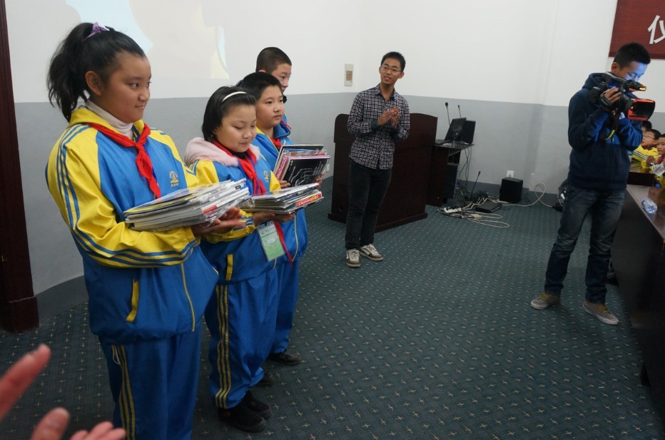 的志愿者们将在“爱心传递书香”活动中为孩子们募集到的爱心书籍捐献给了学生代表,这些书满满地承载着我院学子对孩子们的祝福和希望。随后,西安小学的同学们纷纷发言讲述了自己的梦想,他们或天真可爱,或奇思妙想,但却个个目光坚定、信心满满。接着,来自我院的大学生志愿者们为大家带来了精彩的魔术表演,扣人心弦的魔术聚焦了孩子们的眼球,大家屏住呼吸、全神贯注,神奇的纸牌变换让大家惊喜连连、掌声不断。最后,徐维同学针对近来在吉林省松原市发生的5.5级地震给孩子们进行了关于地震知识的普及宣传,强调了针对突发地震的的正确逃生方法,并组织孩子们观看了专题教育片,在轻松愉快的氛围中此次班会圆满结束。