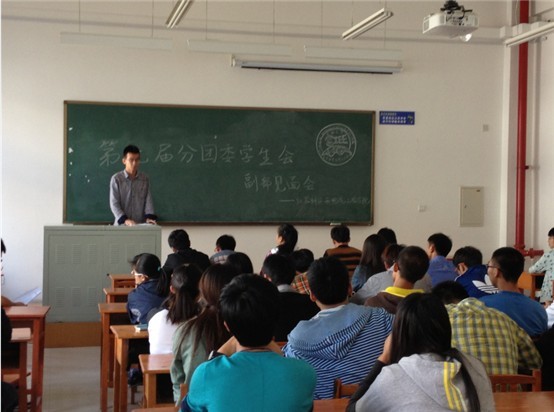 第九届分团委、学生会第一次全体学生干部会议于2013年9月18日13:30在中心校区李四光楼313室举行。学院第九届分团委副书记孙鹏琨、学生会主席韩哲鑫、学生会副主席徐维、各部门部长及全体副部长参加了此次会议。
