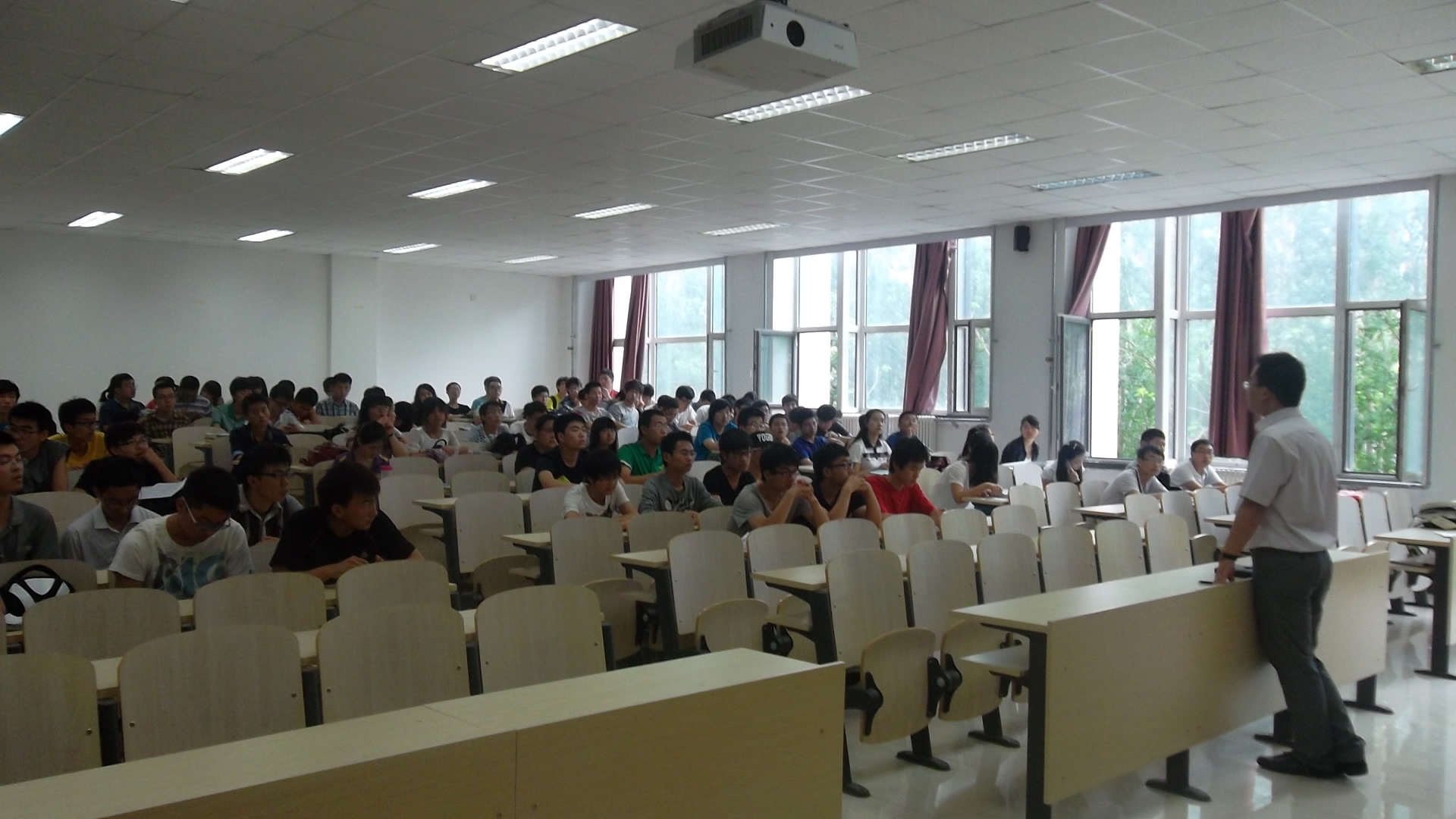 2011级学生辅导员朱宇主持会议, 2011级全体学生参加了会议。