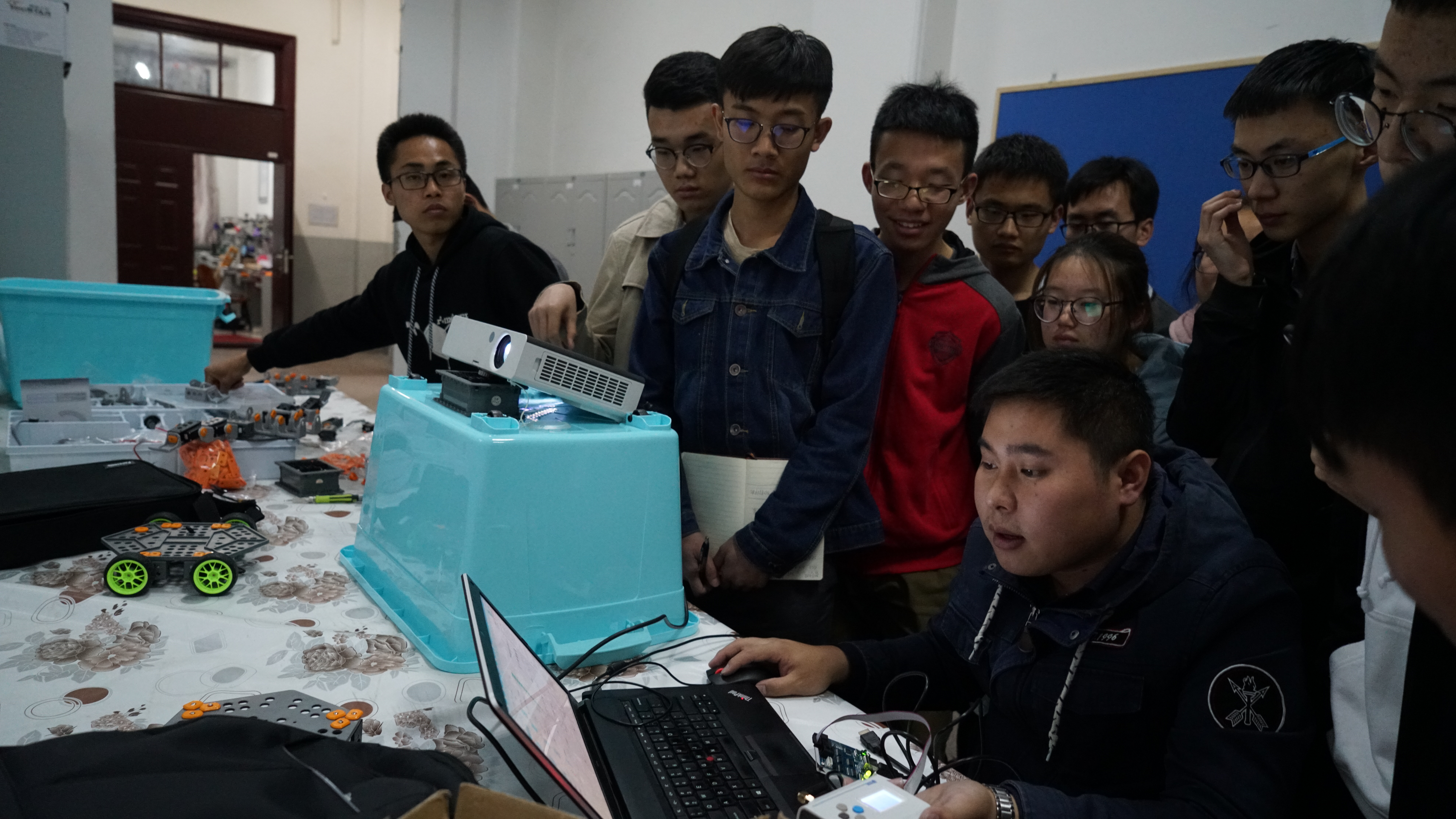 为了提高机器人小组全体成员的技能和专业知识,迎接吉林大学第一届机器人大赛,2017年4月26日晚上,博创机器人工程师来到朝阳校区地质宫216,对2016级216+开放实验室机器人小组进行培训。本次培训活动由大学生科技创新协会承办。