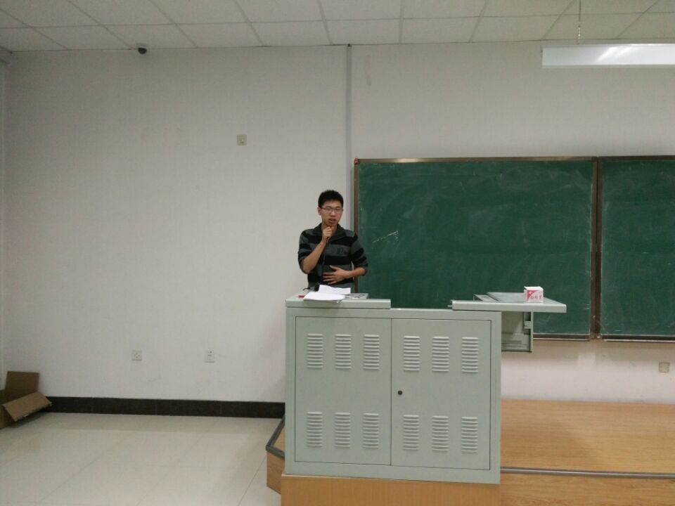 在李四光楼302教室举行了电子设计竞赛颁奖仪式,颁奖仪式由电子科技协会副主席周葛主持,分团委副书记于一兵,学生会主席岳良广以及电子科技协会副主席张思雨出席了本次仪式,2015级全体新生参加了本次仪式。