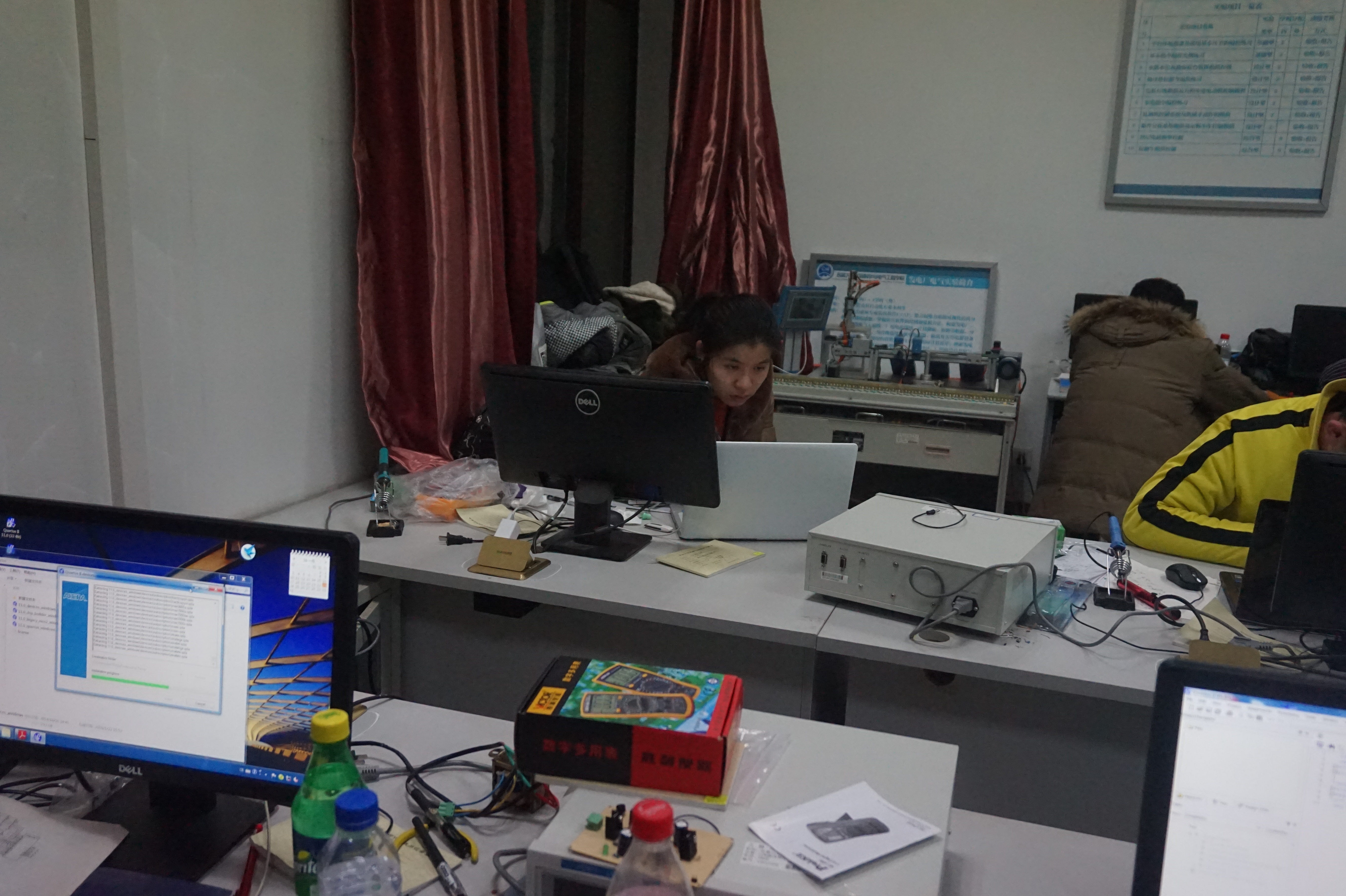 “216+开放实验室”以及电子科技协会组建的科技创新团队计划于2016年1月15日-25日开展寒假专业社会实践活动。2016年1月22日参加实践活动的队员按计划分别学习了20dB衰减器的设计与制作,金属屏蔽盒盒射频线的使用以及专业社会实践。