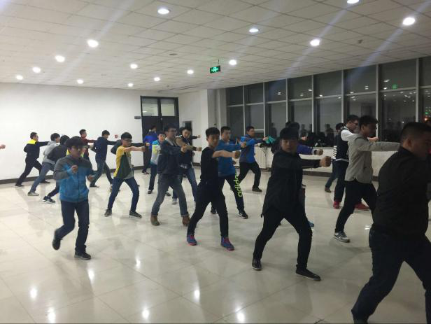 长拳的排练也在紧锣密鼓地进行。为了能在长拳比赛中取得出色的表现,2015级同学们在体育部学生干部的带领下于2016年4月6日在北一楼下空地开始了紧张的备赛准备。