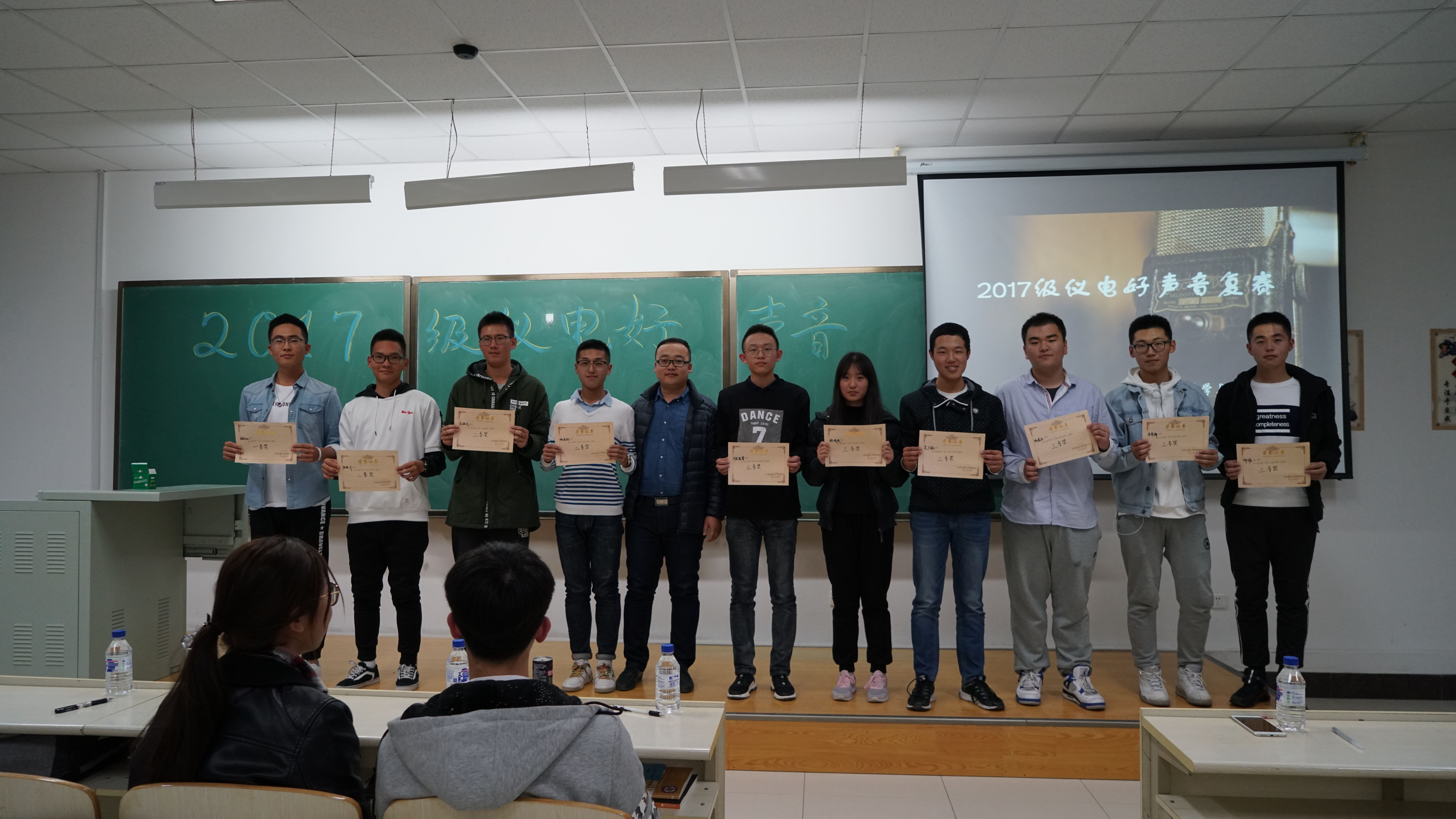 文体部在中心校区李四光楼208教室举办了2017级“仪电好声音”复赛。评委有我院团委书记兼15、17级辅导员张昊宇老师、学生会主席马松辰、团委副书记仲点石、文体部部长梁佩佩、组织培训部部长颜培荣以及新闻媒体社主编李笑宇。