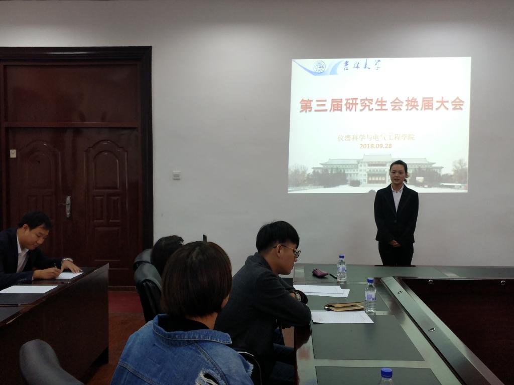 随后,有意向继续为学院研究生会服务的同学依次上台演讲竞职,各位在第二届研究生会工作中表现积极的同学分别就个人优势、对研究生会的认识及今后工作构想等方面进行阐述,精彩的演讲赢得了老师及同学们的赞叹。演讲过后,全体与会成员进行了民主投票,经第二届研究生会常务副主席梁冰琪唱票、宣传部部长谷佳月计票、杨冬老师监票,新一届的研究生会干部顺利产生。周琪当选第三届研究生会主席,李昊阳当选常务副主席兼秘书长,张超越、房钰、宋爽、王若冰当选副主席。大会还选举产生了第三届研究生会各部门负责人。