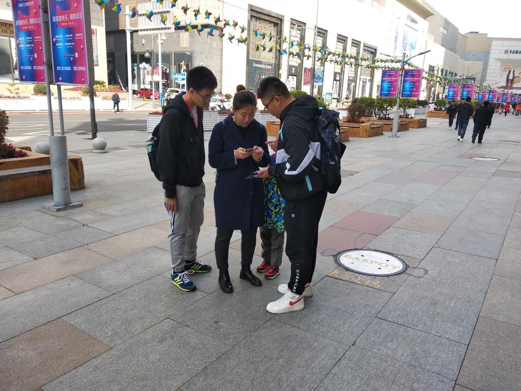10月21日上午8:00,12名志愿者在中心校区经信教学楼集合完毕,随后出发前往募捐地点。小组长进行了简单的活动介绍并且分发了募捐材料,活动在上午9:00正式开始。志愿者两人一组,分散寻找路人进行募捐,让温暖的爱心在社会各界爱心人士间传递。其中一组志愿者遇见的第一个行人就表示对此次温暖行动有浓厚的兴趣。经过志愿者的详细介绍,他以爱心人士的名义匿名捐出了此次活动的第一个爱心包裹。顺利的开始给了志愿者们极大的信心,他们热情满满地继续进行募捐。然而接下来的一段时间并没有像刚开始那样顺利,行人的淡漠和无视、商场保安的驱逐都打击着志愿者们的信心,但这些都不能扑灭他们心中的热情之火,也不能击溃他们心中的将爱心传递下去的信念。本着对志愿服务的热爱,他们依然坚守在志愿岗位上。志愿者们越挫越勇,行人的每一次驻足,每一次耐心地聆听讲解都是对他们最大的鼓励。在志愿者的不懈努力下,活动收获了喜人的成绩,达到了此次活动目的。