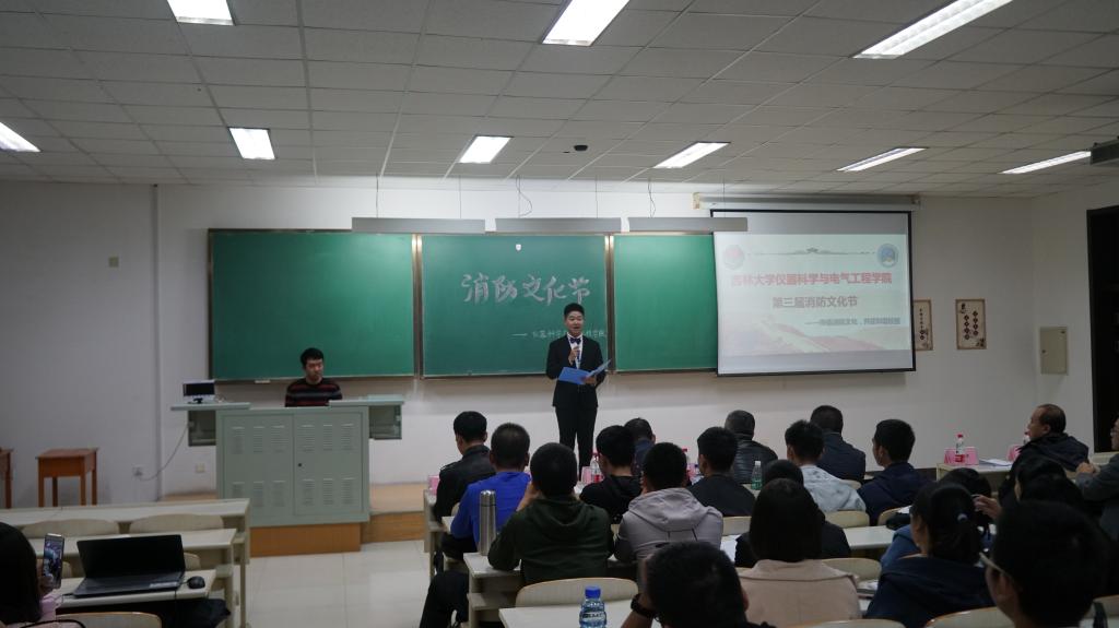 于2018年11月3日晚6:30在吉林大学中心校区李四光楼302教室举办了第三届消防文化节活动。学院党委书记王爱民教授、副院长葛晓野老师、党委副书记兼副院长周伟老师、行政办公室主任边江老师,北区朝阳保卫办防火科科长齐占斌老师共同出席了本次活动,活动由2018级李钊洋同学主持,2018级全体同学共同参与。