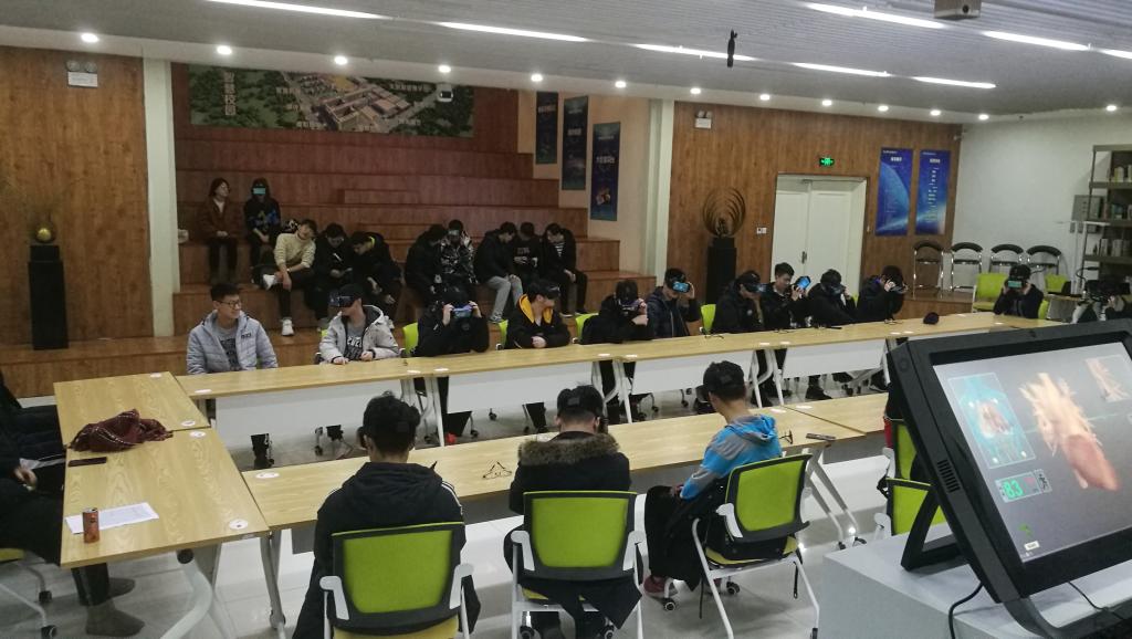 参观活动开始,领队老师将同学们分为4组,前去不同的参观地点。首先是体验VR技术,感受科技对日常教学的辅助功能。现场老师向同学们讲解了VR技术的发展历史以及发展前景,接着让同学们体验了VR技术,同时邀请感兴趣的同学上前体验VR技术在医疗教学上的应用。同学们对此表现十分踊跃。其次是参观吉林大学五大学院的科创空间,包括汽车、机械、管理、电子、通信在内的五个学院在科创中心的二楼建设的属于自己的科创空间,空间里既可以展示各学院的作品,又能够提供空间给有需要的同学使用,令同学们赞美不已。随后同学们跟随讲解员的步伐了解了林田科创中心的规划蓝图,参观了位于中心一楼的汽车主题咖啡厅及员工餐厅。最后是科技展示区,其中包括模拟驾驶汽车、智能机器人等部分,同学们在讲解员的带领下参观并体验了各个项目,并展现出了极高的兴趣。在活动的尾声,带队老师千承辉老师高度赞赏了林田创客中心在大学生创新方面取得的成就,并对中心在此次冬令营中的付出表示了衷心的感谢。